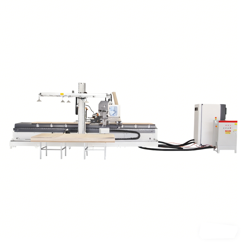 The CNC router performs multi-process machining optimized for sofa structural parts: